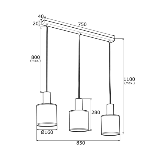 Lustru izgaismo 3x max 15W (E27) spuldzes
